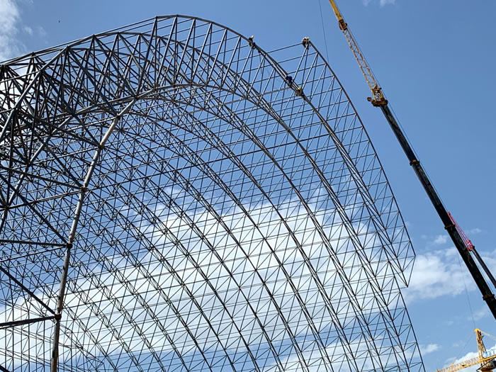 (2)网架加工前应对现场尺寸进行复测,确认无误后方可进行加工、安装;网架制作、运输、安装应遵守《空间网格结构技术规程》JGJ7-2010、《钢网架华阴螺栓球节点》JG/T 10-2009、《钢网架华阴螺栓球节点用高强度螺栓》 GB/T 16939-2016、《华阴钢结构华阴工程华阴施工规范》 GB50755-2012、《华阴钢结构华阴工程施工质量验收标准》 GB50205-2020。